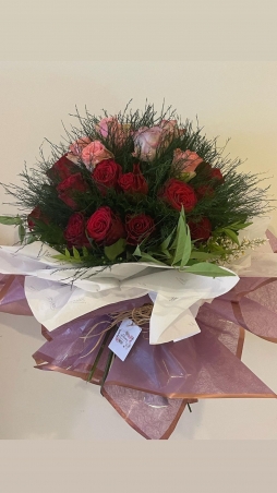 Kırmızı ve mor gül buketi