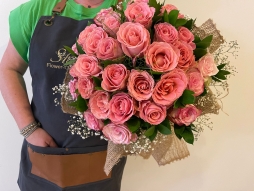 Pembe gül ve anastasya buketi